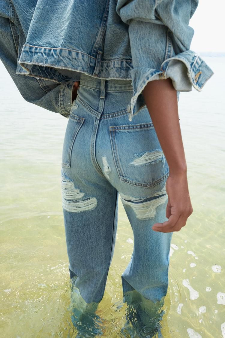 Crafted with premium rigid denim, the jeans hold their shape while giving you that flattering long-leg silhouette. The frayed hems and ripped back detailing add the perfect amount of lived-in character, making these a must-have for trend-forward outfits all year round.