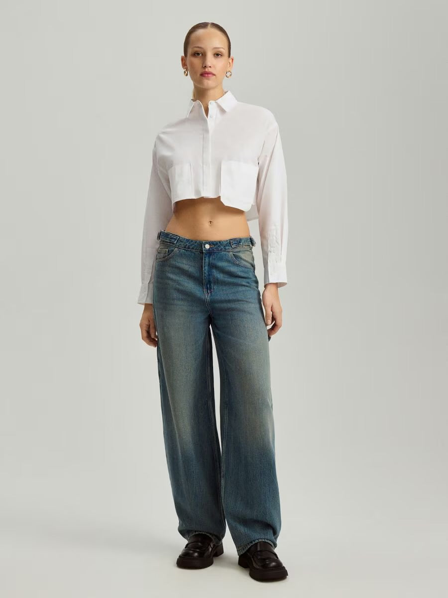 The soft faded wash and subtle whiskering lend that naturally worn-in look, perfect for pairing with cropped shirts, oversized tees, or hoodies. Designed for everyone, these jeans blend street, style, and comfort in one flawless fit.