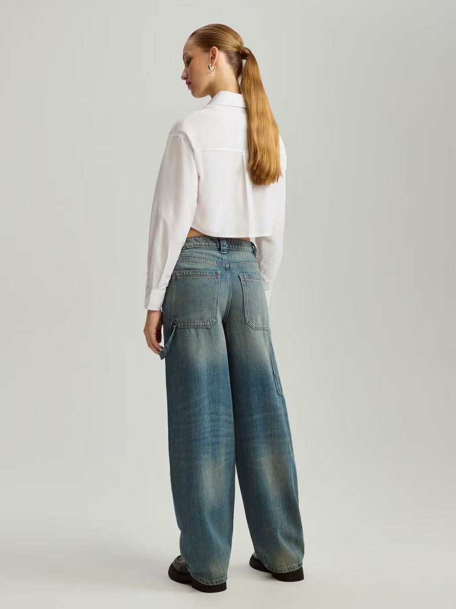 With a mid-to-high rise fit and a super baggy straight silhouette, these jeans channel vintage workwear energy while staying true to a clean, modern aesthetic. The carpenter detailing — including side utility loops and patch pockets — adds both functionality and edge, making them a wardrobe staple that goes beyond gender or trends.
