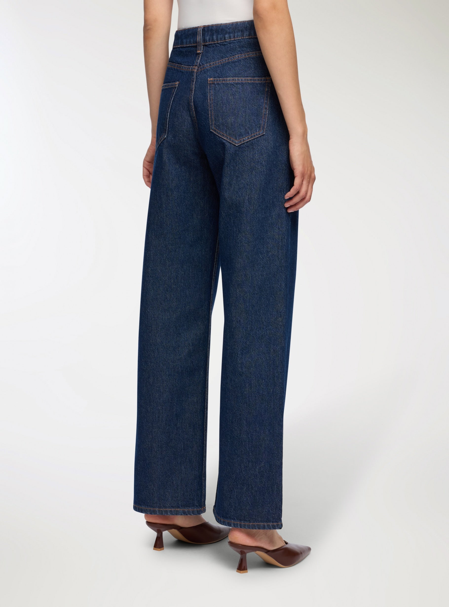 • Fit & Design: High-rise waist for a sleek, elongated look with a straight-leg cut that balances modern minimalism and classic denim charm.